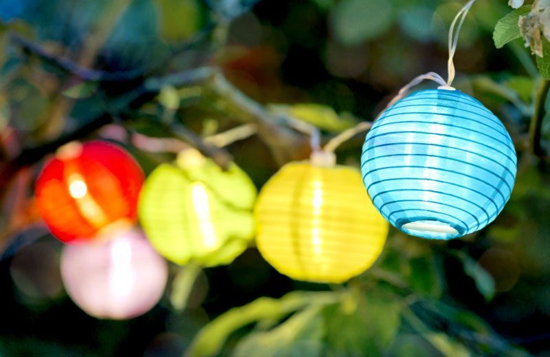 Last but not least: Zaubere eine schöne, sommerliche Wohlfühl-Atmosphäre. Dazu gehören zum Beispiel gute-Laune-Musik, sommerlich frische Farben auf dem Tisch und ein aufblasbarer Pool zum Füsse kühlen. Zusammen mit dem üppigen Grün des Gartens oder der Terrasse kommt dabei garantiert Ferienstimmung auf. Wenn es langsam dunkler wird, sorgen Lampions oder Windlichter für eine tolle Stimmung. Extra-Tipp: Bunte Licht-Girlanden kreuz und quer an die Bäume oder an die Decke spannen und einige farbige LED-Leuchtkugeln in den dunklen Ecken verteilen. So lässt sich der Abend wunderbar ausklingen.