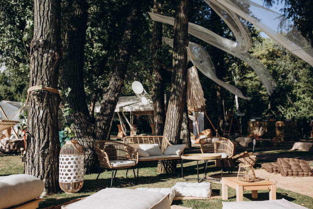 Statt den Raum zu überfrachten, entscheiden Sie sich für ein stimmiges, klares, reduziertes und harmonisches Konzept. Ein schlichter Blumenstrauß auf einem Naturholztisch, sanftes Kerzenlicht oder ein zarter Stoff in gedeckten Farben können genau die Stimmung erzeugen, die Ihre Hochzeit besonders macht.